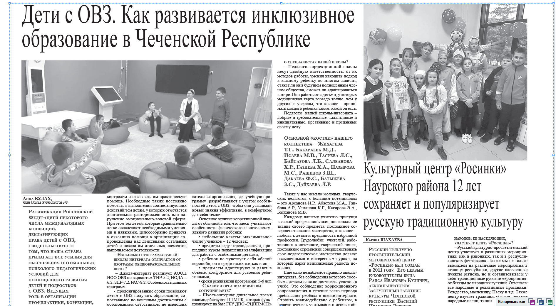 В Чеченской Республике при мощной поддержке Главы ЧР Рамзана Ахматовича Кадырова уделяется особое внимание и оказывается забота детям с ОВЗ, успешно развиваются медицинские и учебно-воспитательные учреждения, строятся коррекционные школы-интернаты. Дети с ОВЗ не чувствуют себя обделенными, а их родители ощущают сильную моральную поддержку во многих аспектах инклюзивного образования.